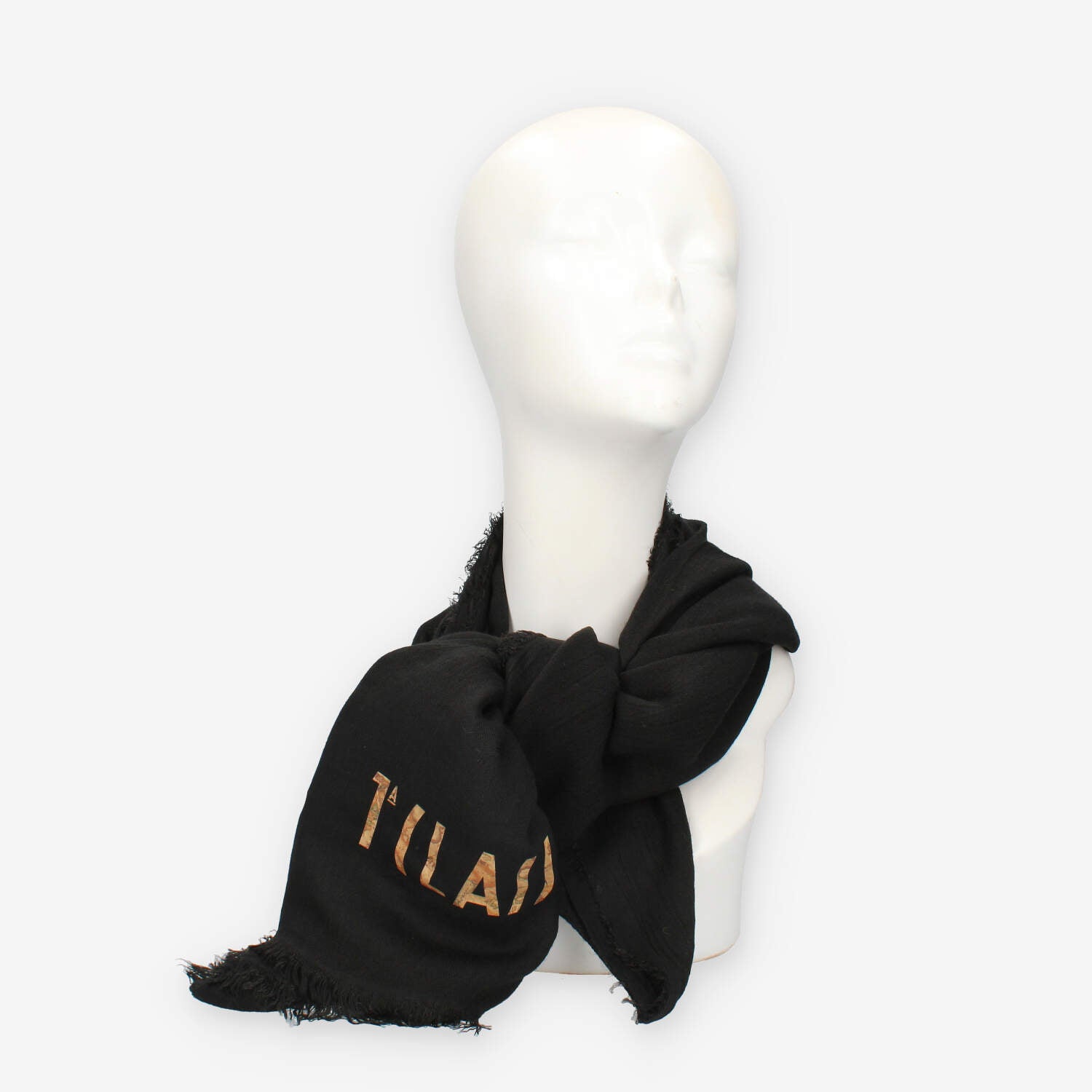 Stola nera rettangolare in fibra di bambu con logo Geo Classic.