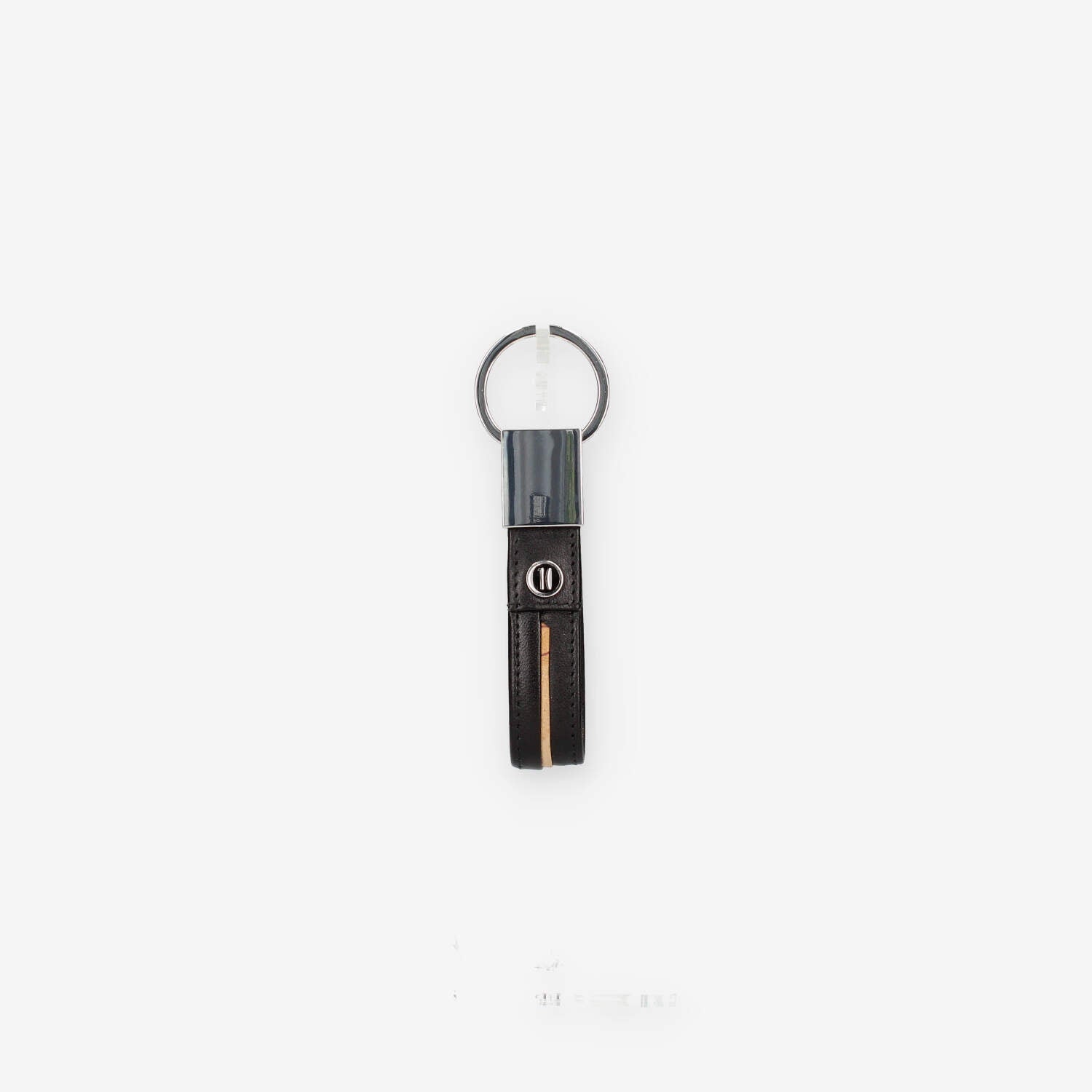 Portachiavi nero in pelle con dettagli in tessuto stampa Geo Classic.