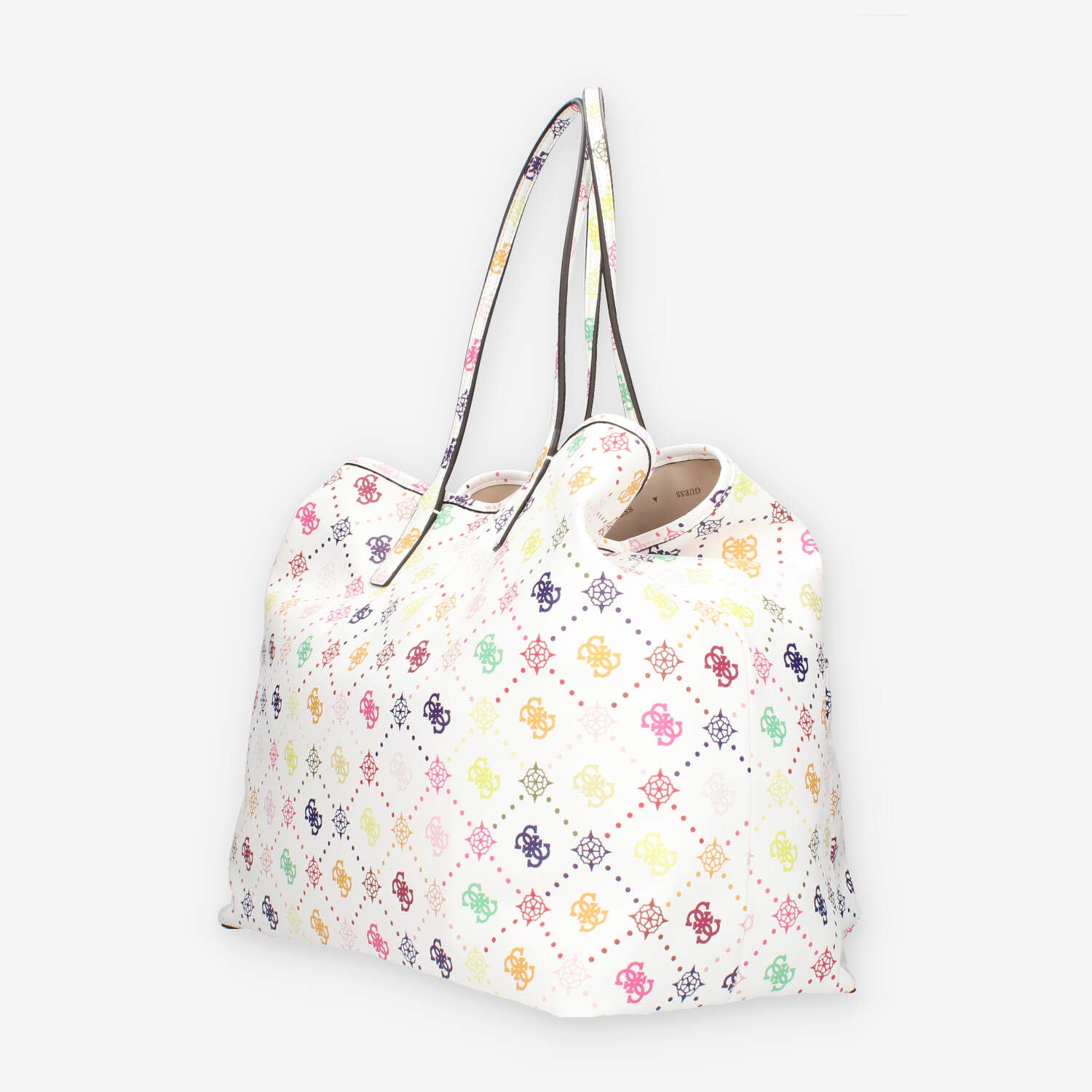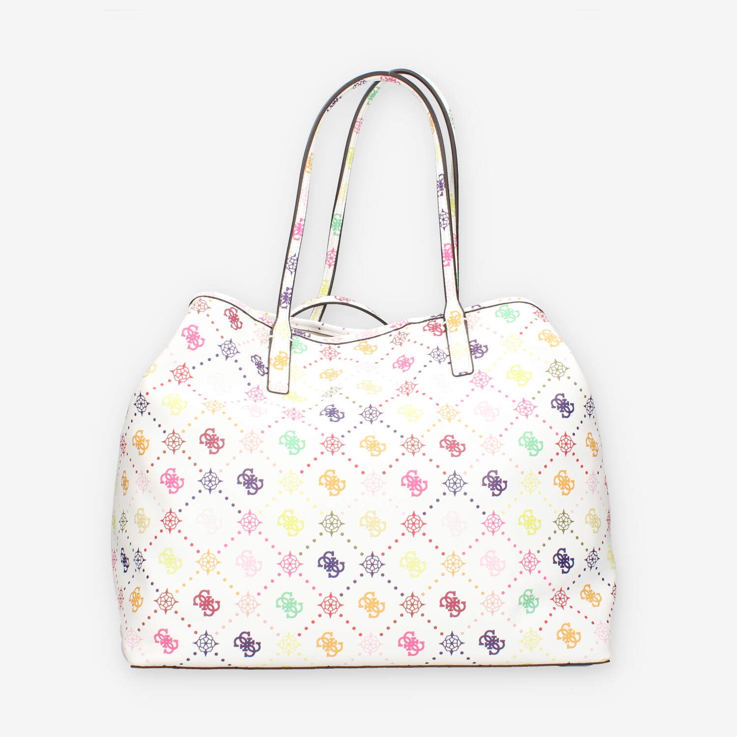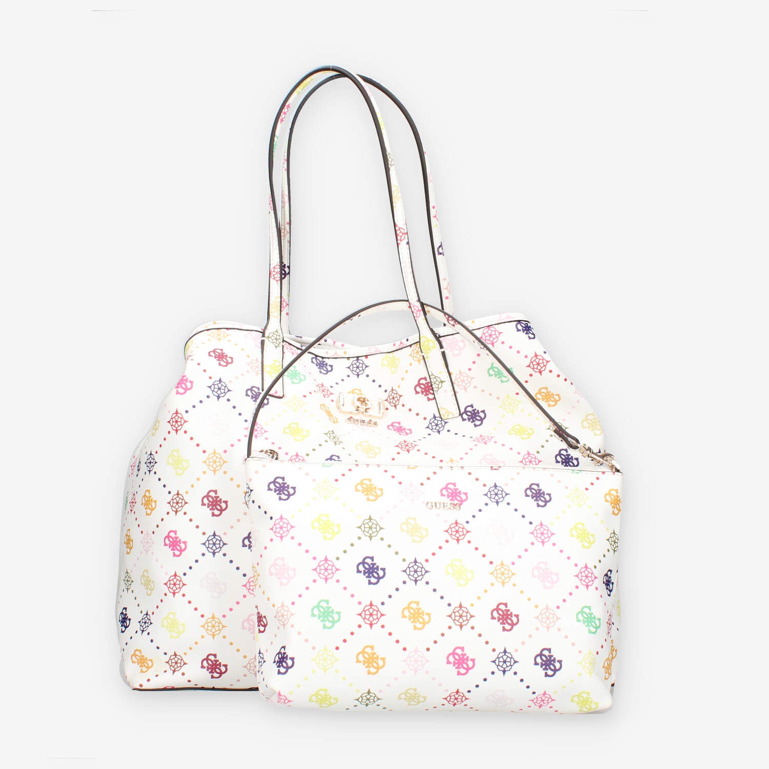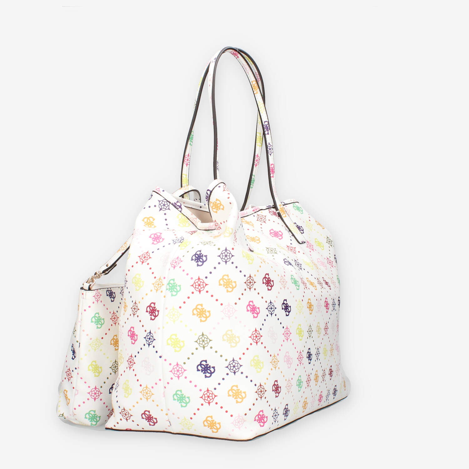Shopping in ecopelle multilogo dotata di pochette staccabile interna con chiusura zip e bottone magnetico di chiusura.