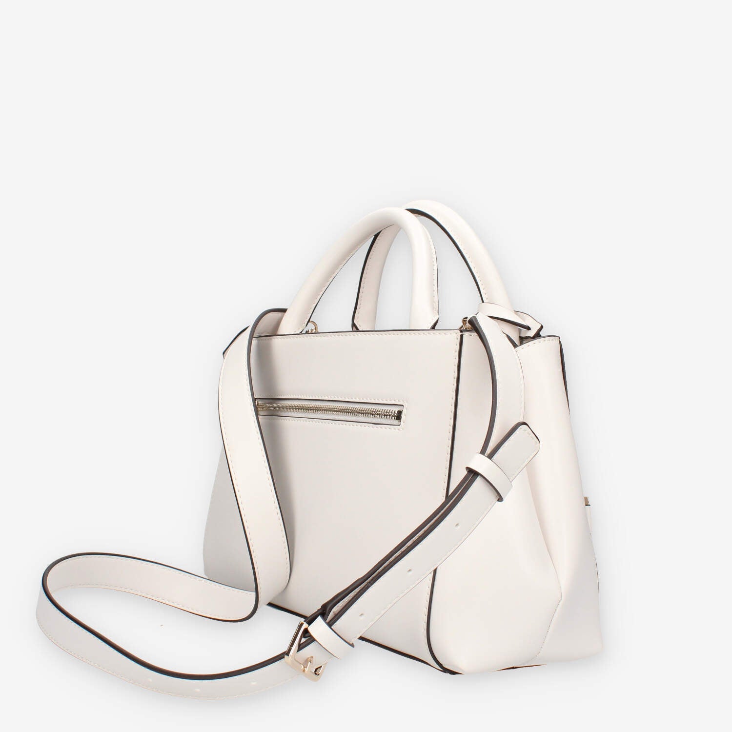 Borsa a mano beige a 3 scomparti dotata di lampo di chiusura centrale e bottoni magnetici, 3 tasche interne e 1 esterna e tracolla opzionabile e regolabile.