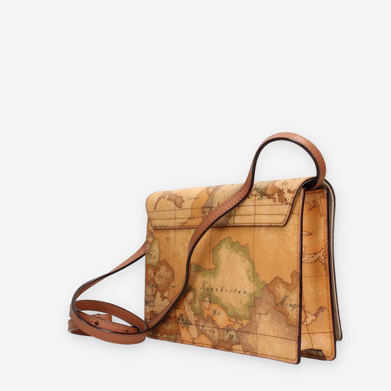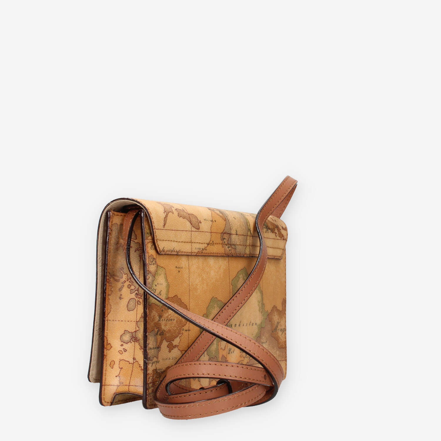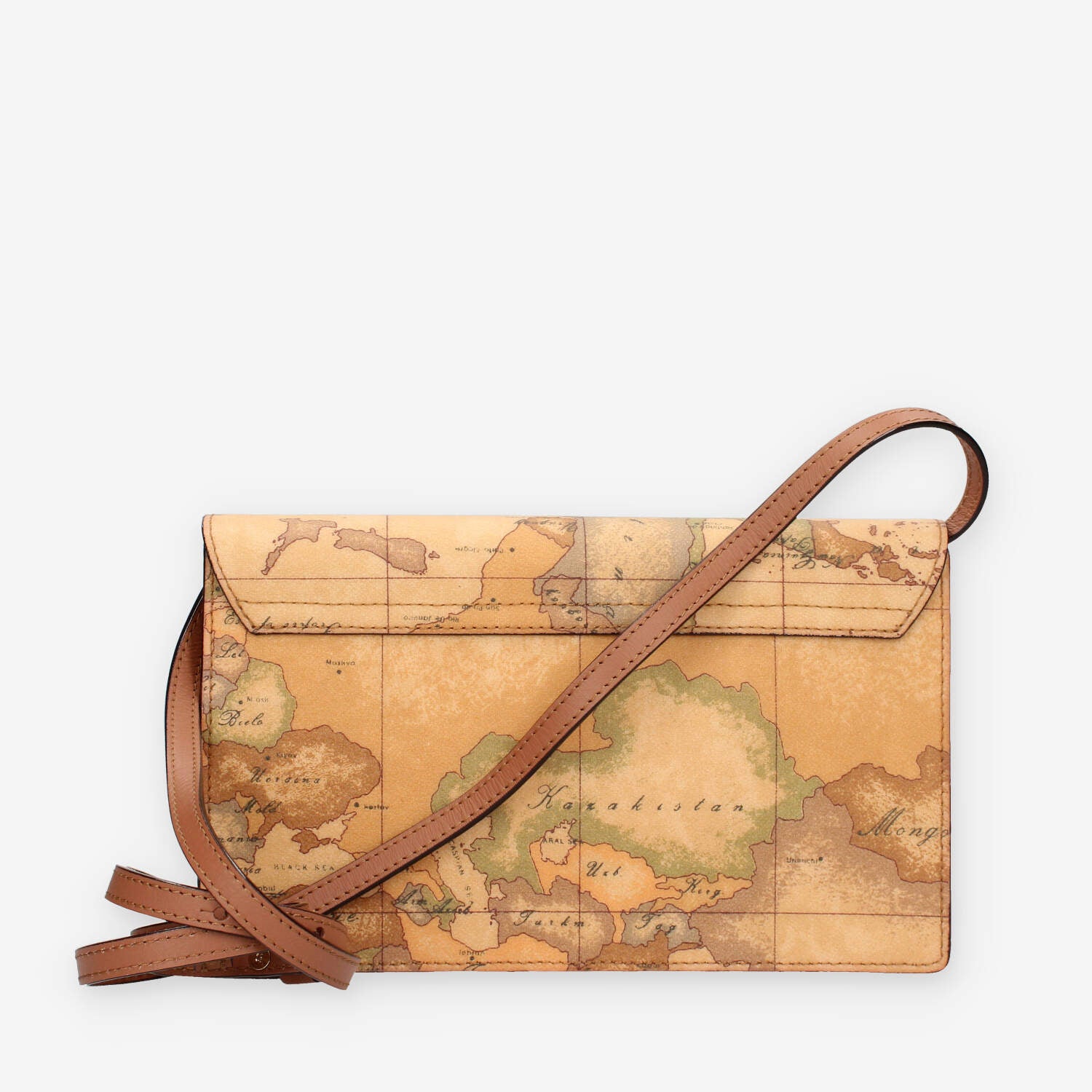 Pochette in pelle e tessuto stampa Geo Classic dotata di 2 taschine interne patta di chiusura con bottone magnetico e tracollina regolabile.