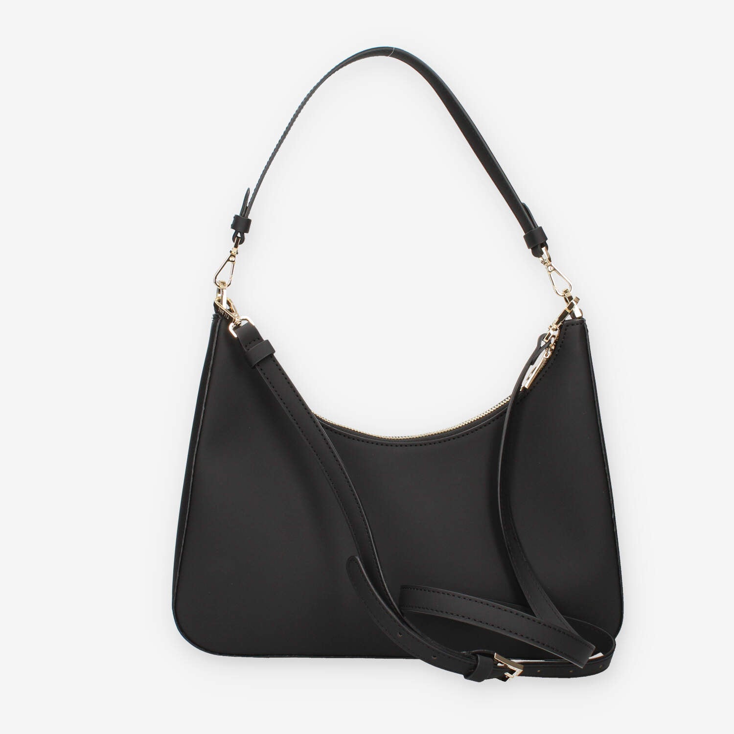 Borsa a spalla in ecopelle gommata nera e Geo Classic dotata di 2 tasche interne di cui 1 con zip, lampo di chiusura, manico e tracolla opzionabili e regolabili.