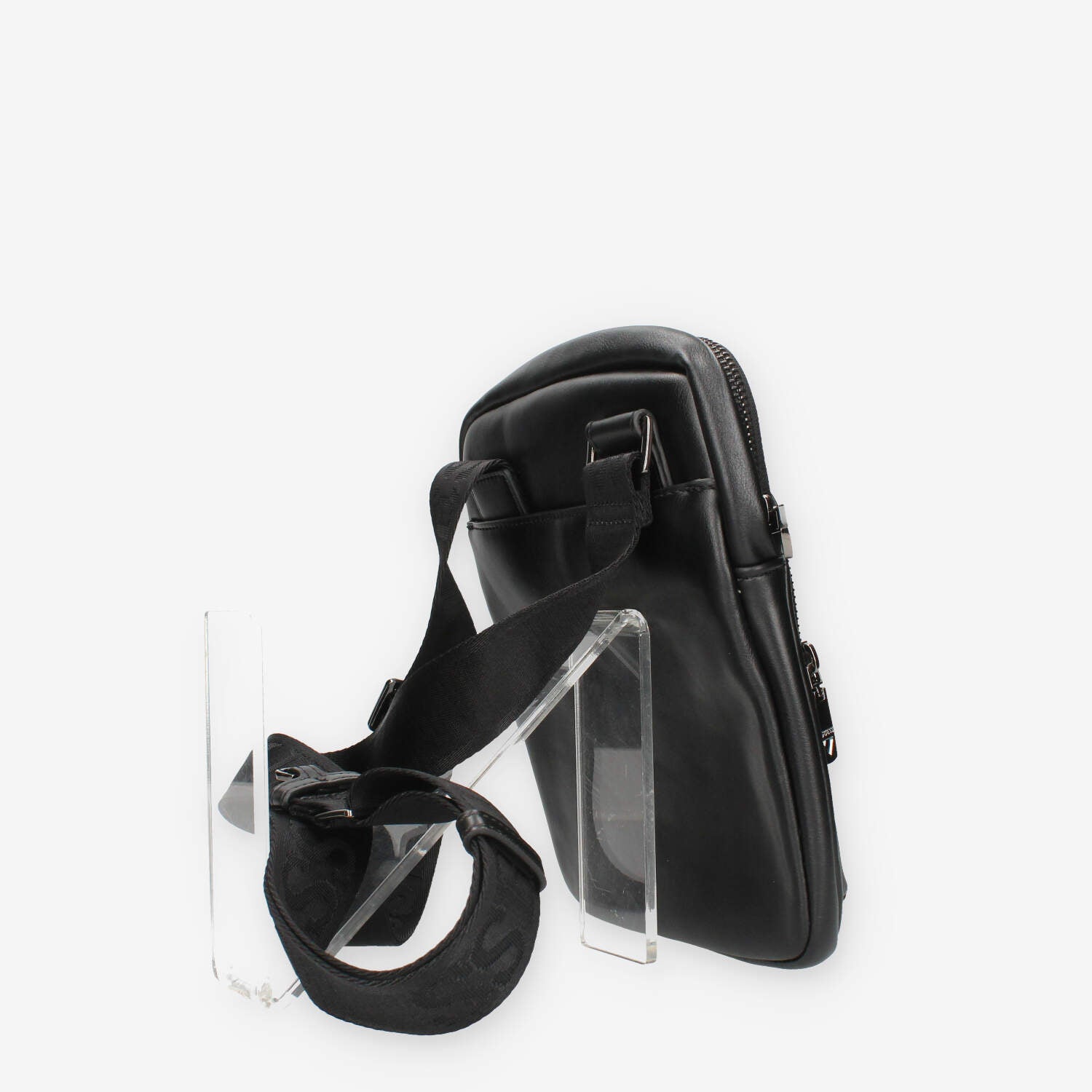 Borsa a tracolla nera da uomo in ecopelle dotata di 2 tasche interne e 2 esterne e chiusura lampo centrale.