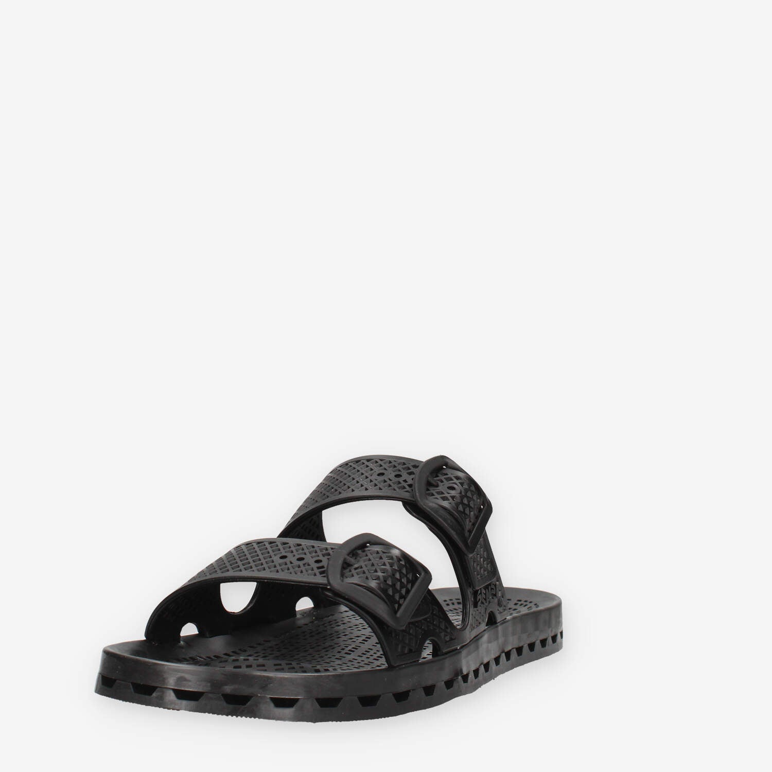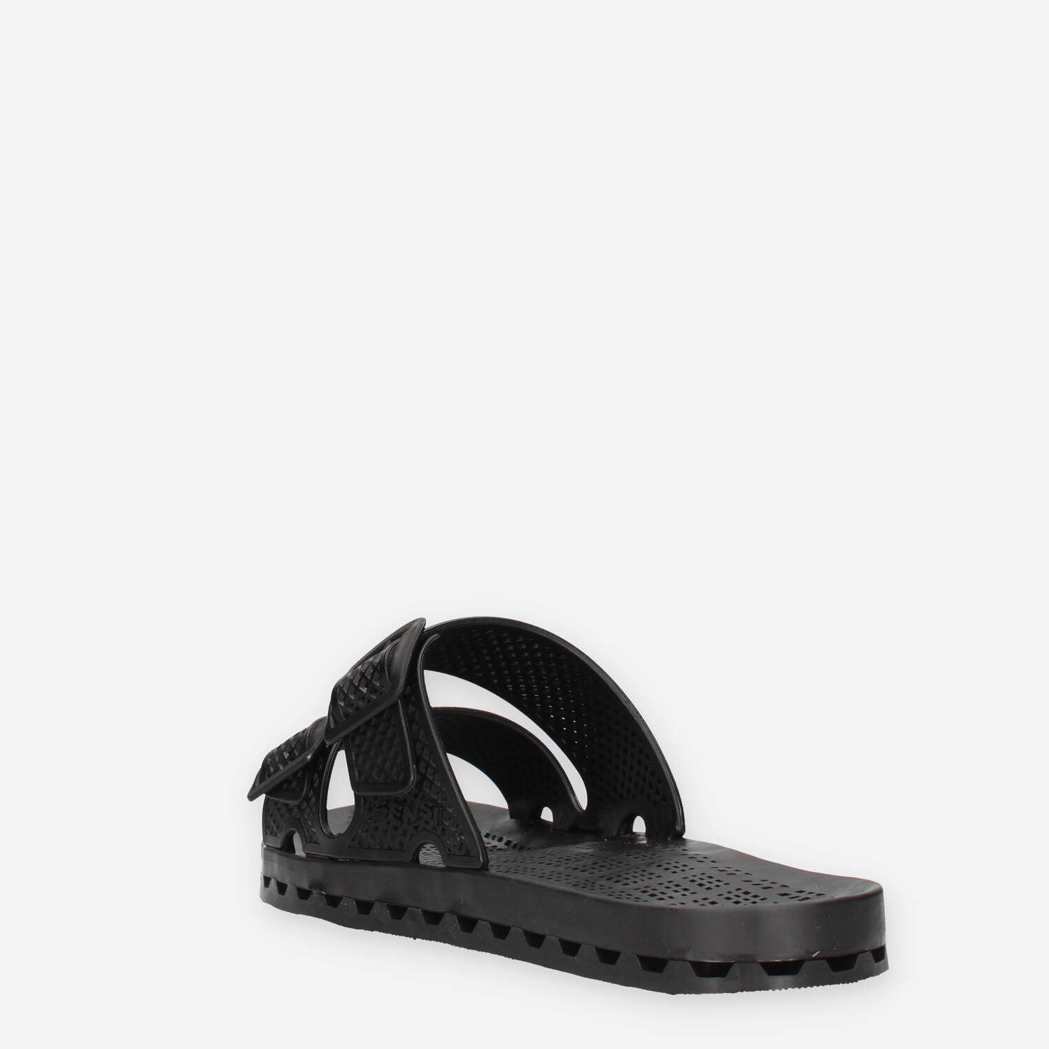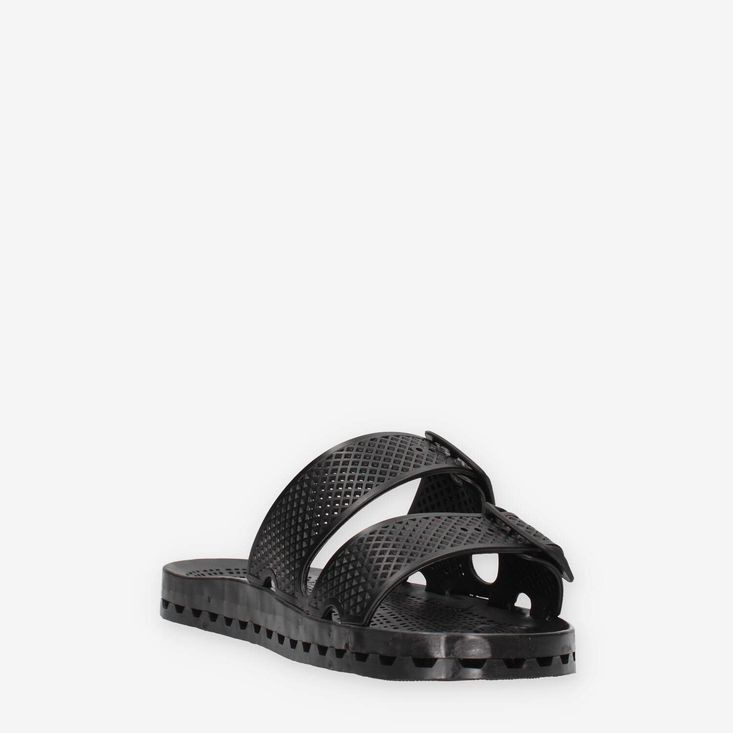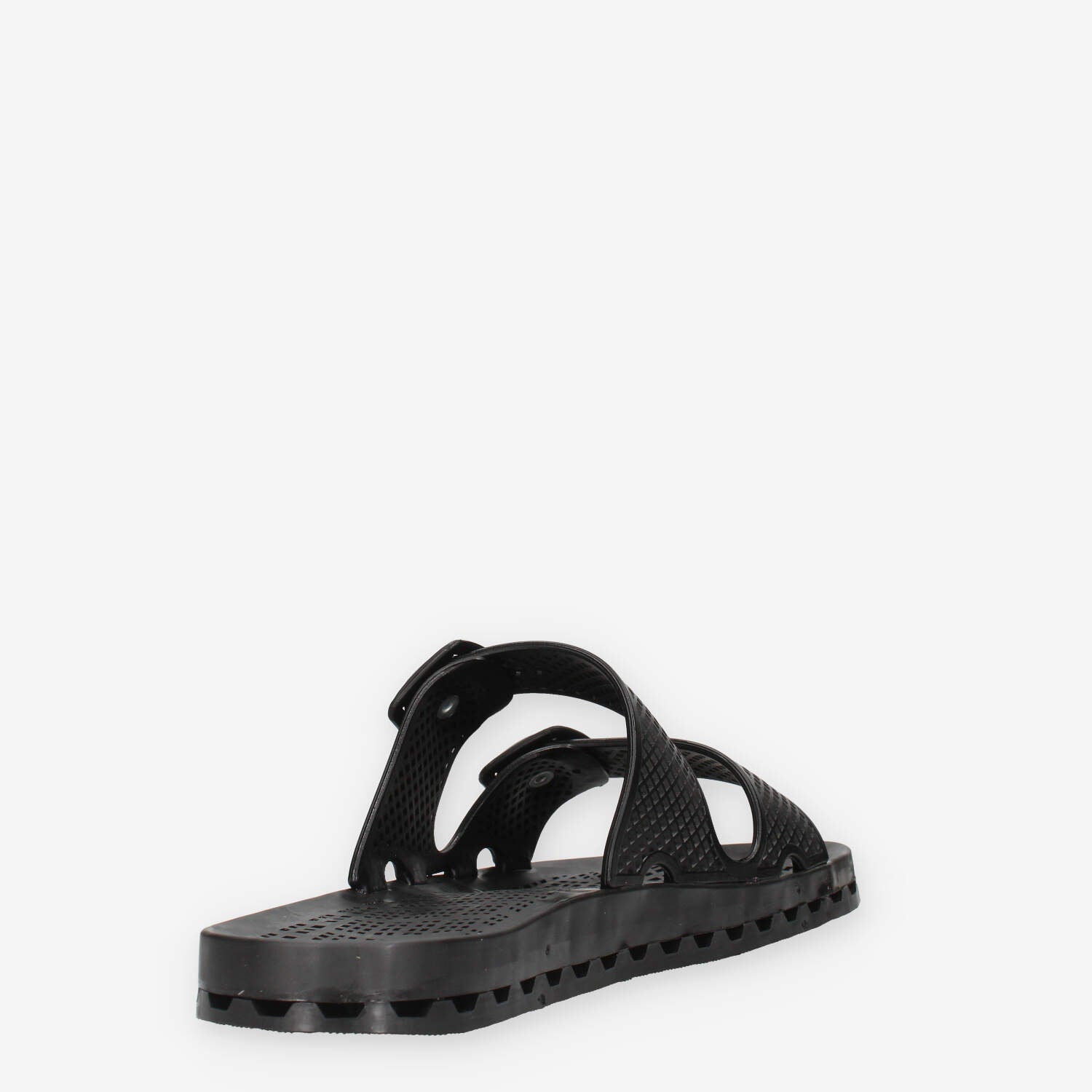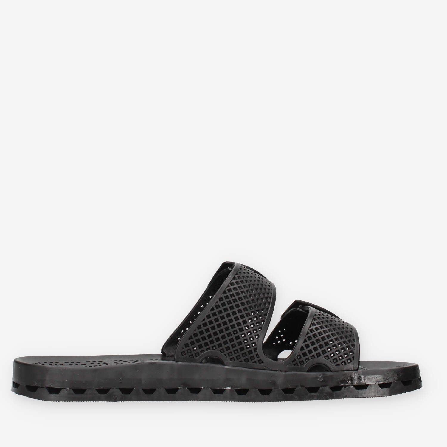 Ciabatte nere a doppia fascia in PVC 100% riciclabile.