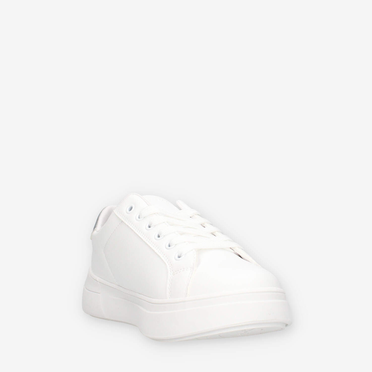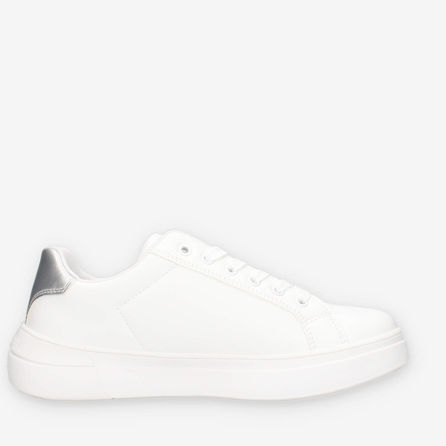 Sneakers bianche e argento da donna in ecopelle dotate di sottopiede in tessuto estraibile e fondo in gomma.