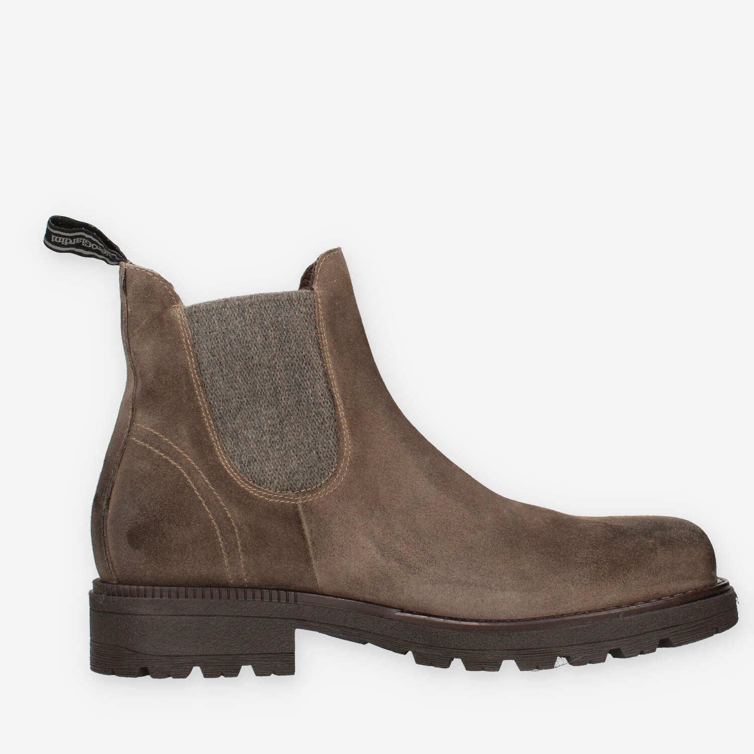 Stivaletti beige da uomo in vera pelle dotati di elastici laterali, fondo in gomma e soletta estraibile in poliuretano DRY-GO.
