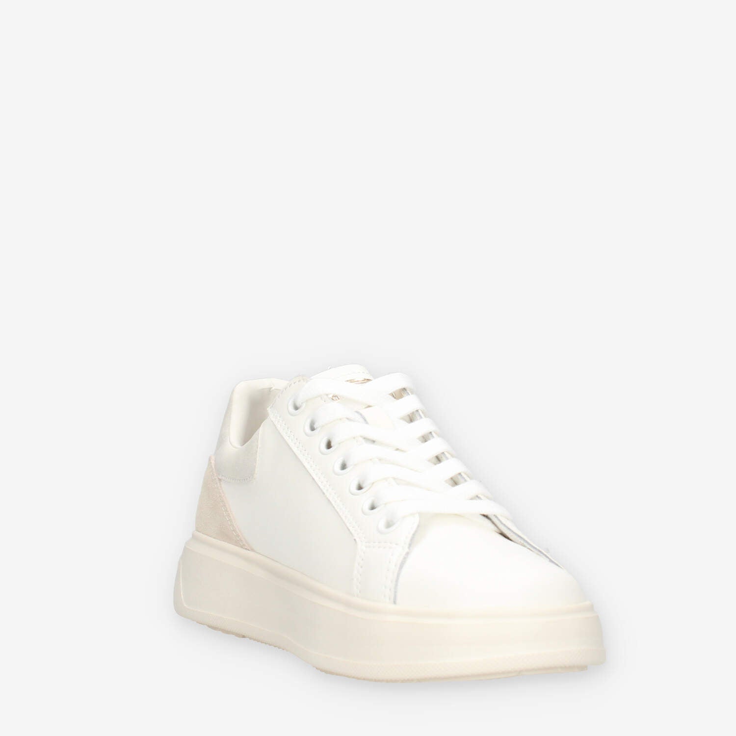 Sneakers bianche da donna in vera pelle dotate di sottopiede in pelle estraibile e fondo in gomma.