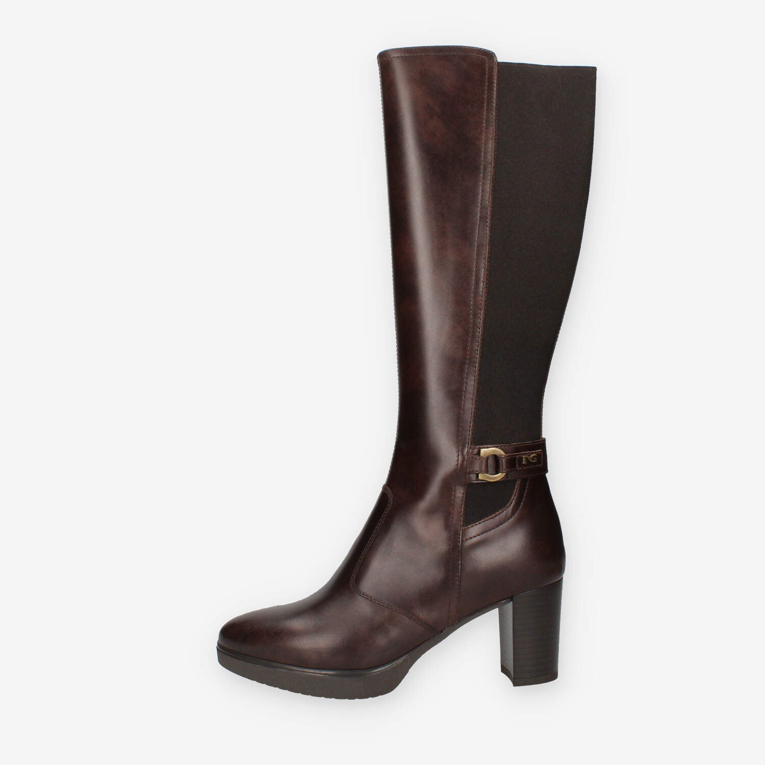 Nero Giardini Stivali testa di moro da donna in pelle e tessuto elastico dotati di tacco largo alto circa 7 cm.
