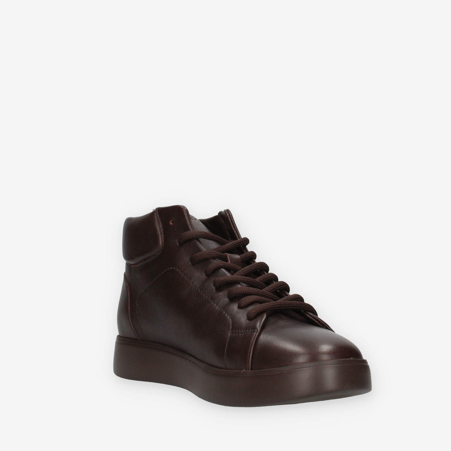 Sneakers alte testa di moro da uomo in vera pelle dotate di morbido sottopiede in pelle estraibile e fondo in gomma.