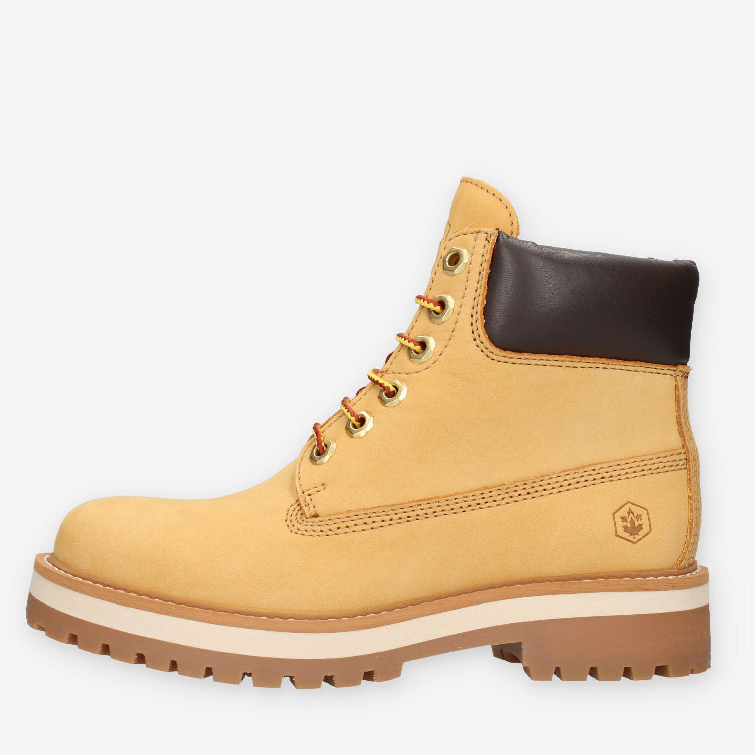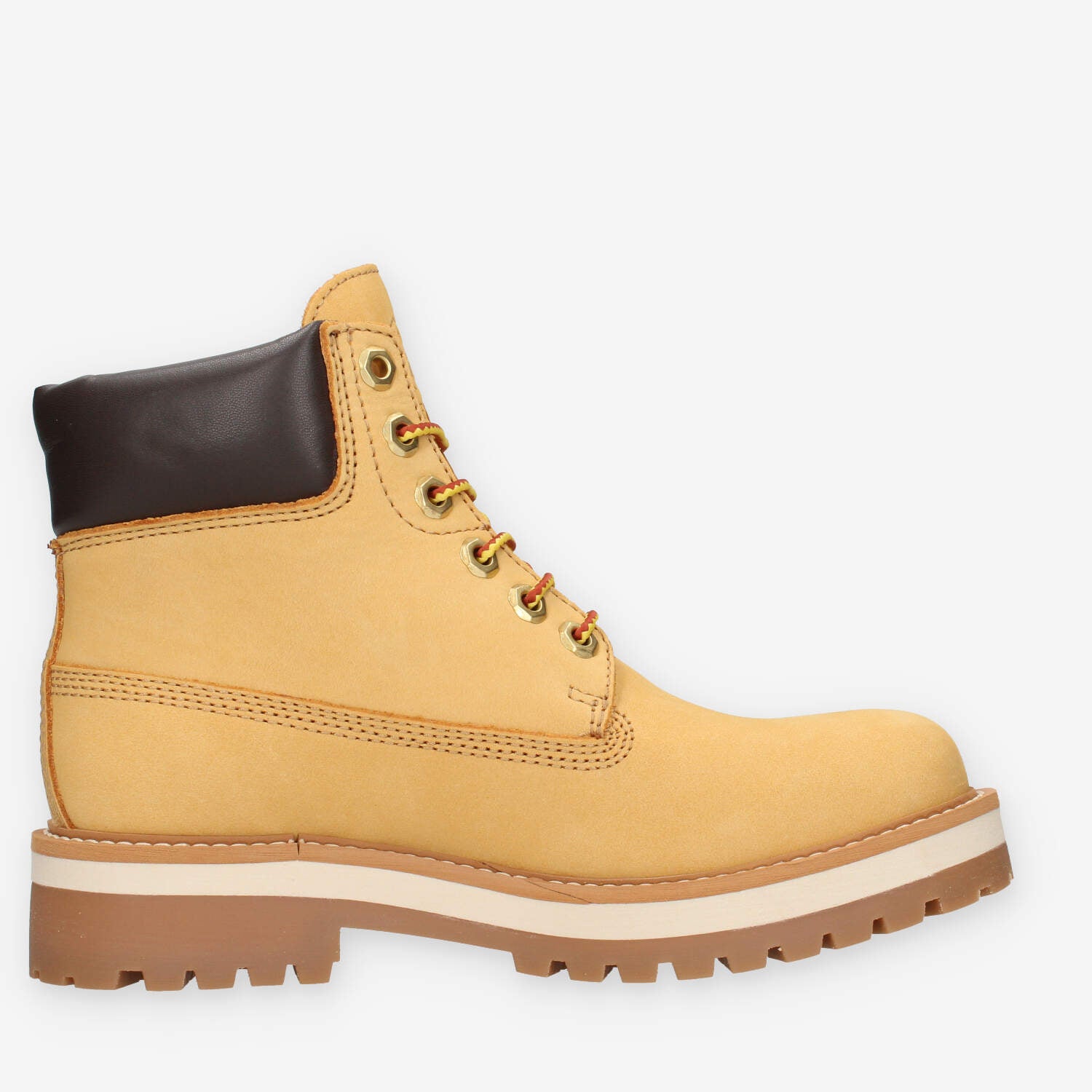 Scarponcini gialli da donna in vera pelle di nubuck dotati di sottopiede in pelle e fondo in gomma.