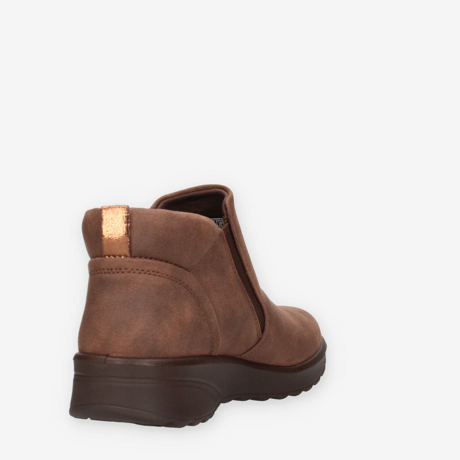 Stivaletti marroni da donna in ecopelle linea vegan dotati di soletta Skechers Air-Cooled Memory Foam®.