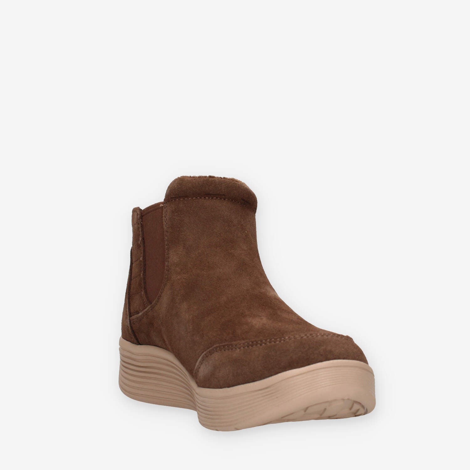 Stivaletti marroni da donna in ecopelle dotati di fodera in ecopelliccia rasata, soletta Arch Fit® e fondo in gomma..